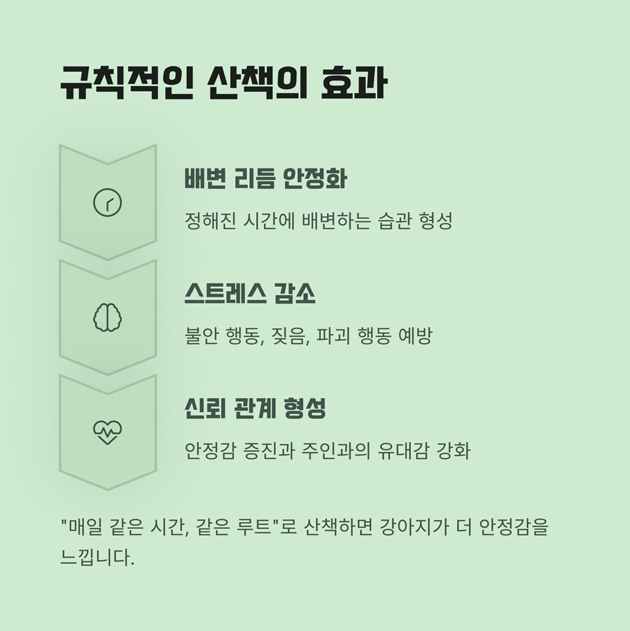 산책을 정해진 시간에 하면 배변 리듬이 일정해지고 스트레스도 줄어듭니다.