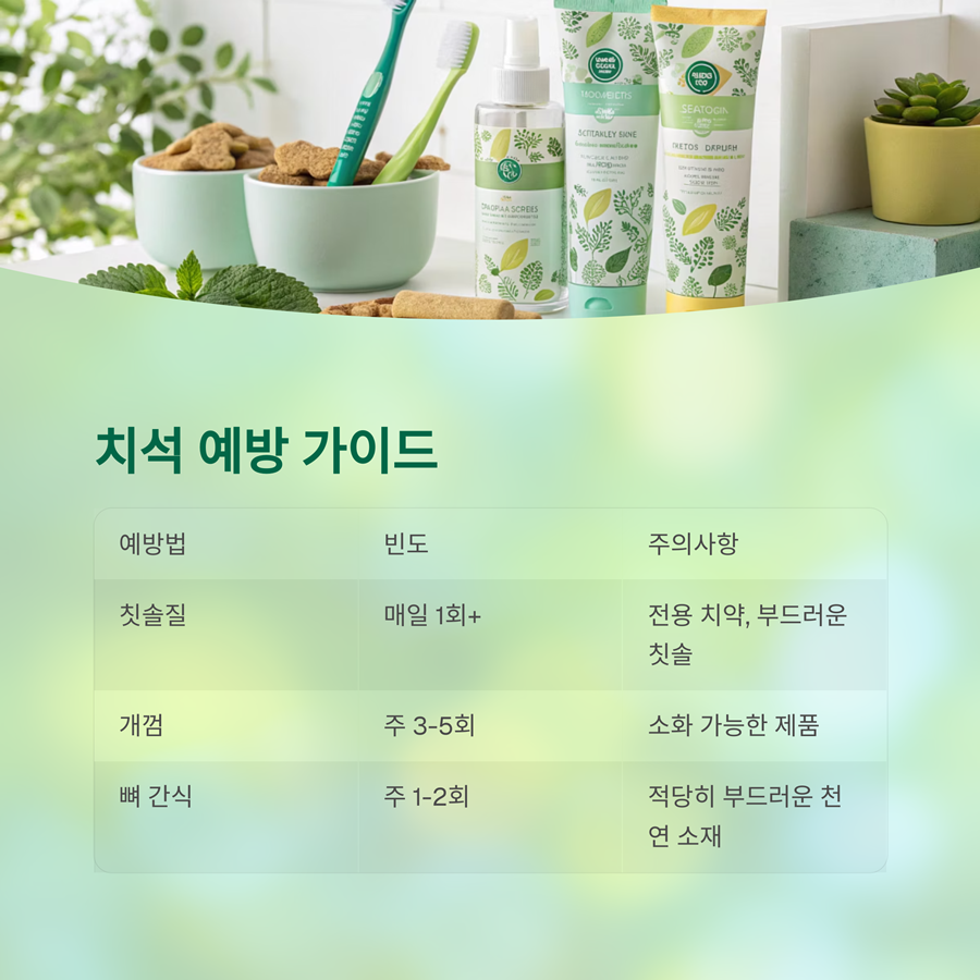 | 개껌 제공 | 주 3~5회 | 소화 가능한 제품 선택 |