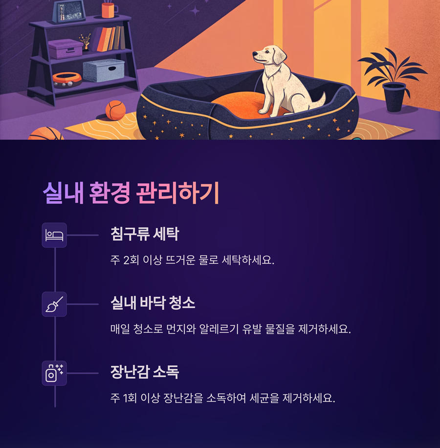 강아지 피부병은 집 안 환경도 영향을 미칩니다.