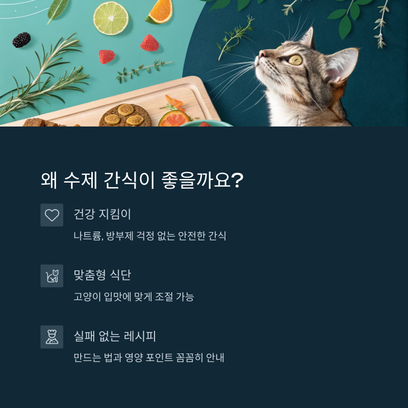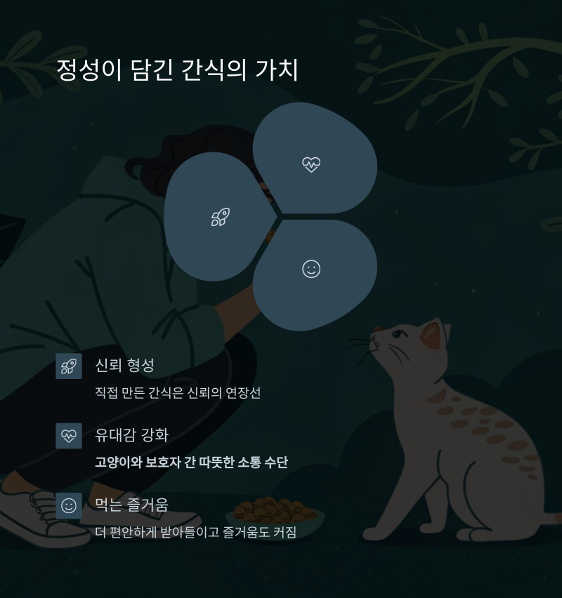 수제 간식은 단순한 영양 공급을 넘어서, 고양이와 보호자 간의 유대감을 높이는 따뜻한 소통 수단이 됩니다.