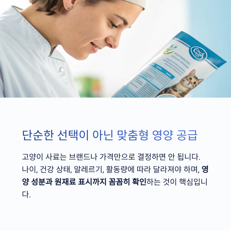고양이 사료는 단순히 브랜드나 가격으로 결정해서는 안 됩니다.