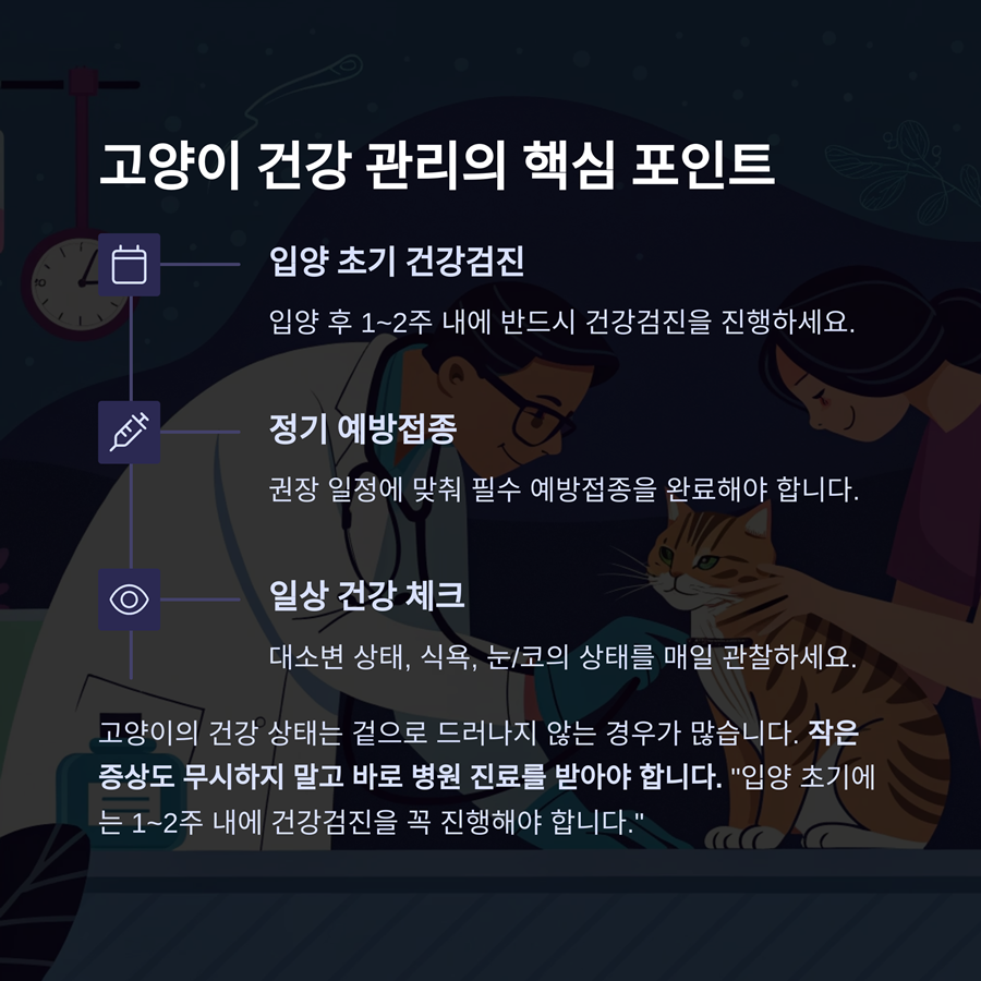 "입양 초기에는 1~2주 내에 건강검진을 꼭 진행해야 합니다."