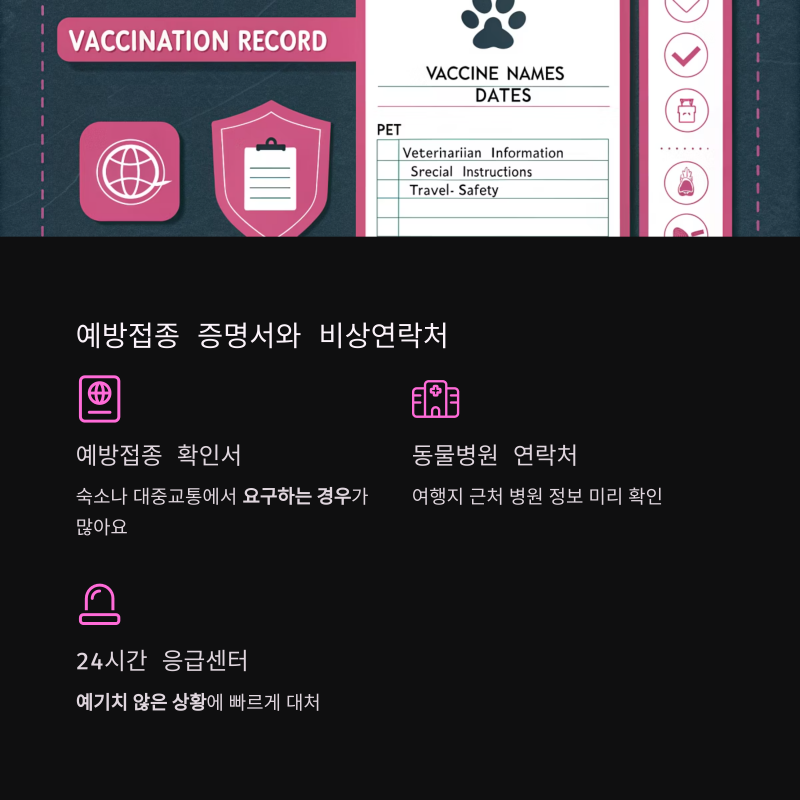 예방접종 증명서와 비상연락처는 안전의 기본입니다