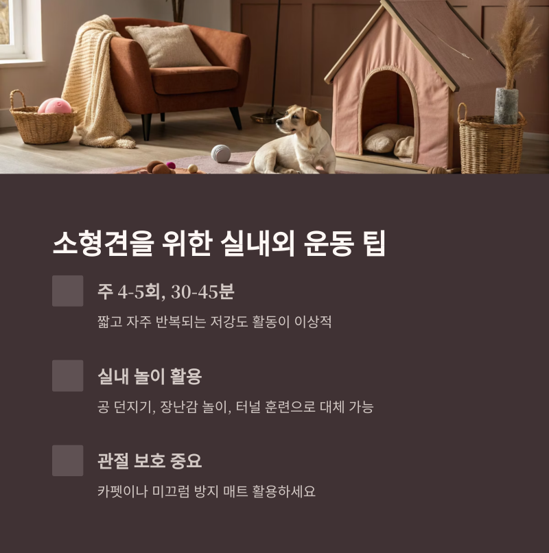 소형견은 실내 놀이와 짧은 산책을 병행하세요