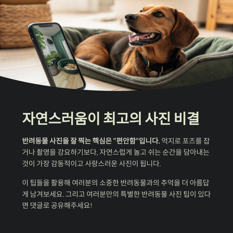 반려동물 사진을 잘 찍는 핵심은 “편안함”입니다.