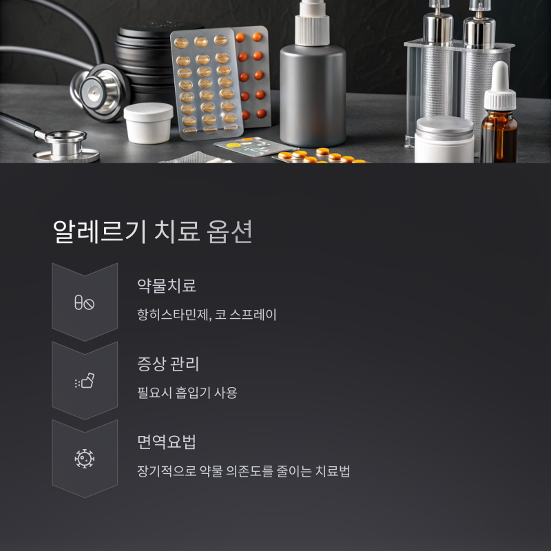 하지만 증상이 지속되거나 일상생활에 영향을 준다면, 피하면역요법(알레르기 백신 치료)을 고려할 수 있습니다.