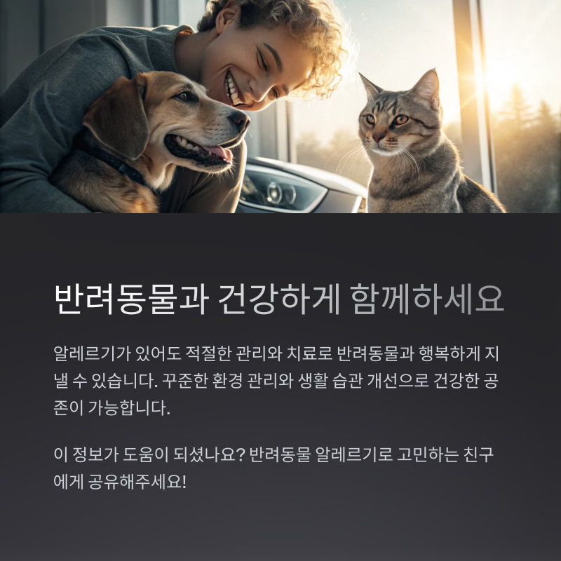 적절한 진단과 꾸준한 환경 개선, 치료 병행으로 반려동물과의 건강한 동거가 충분히 가능합니다."
