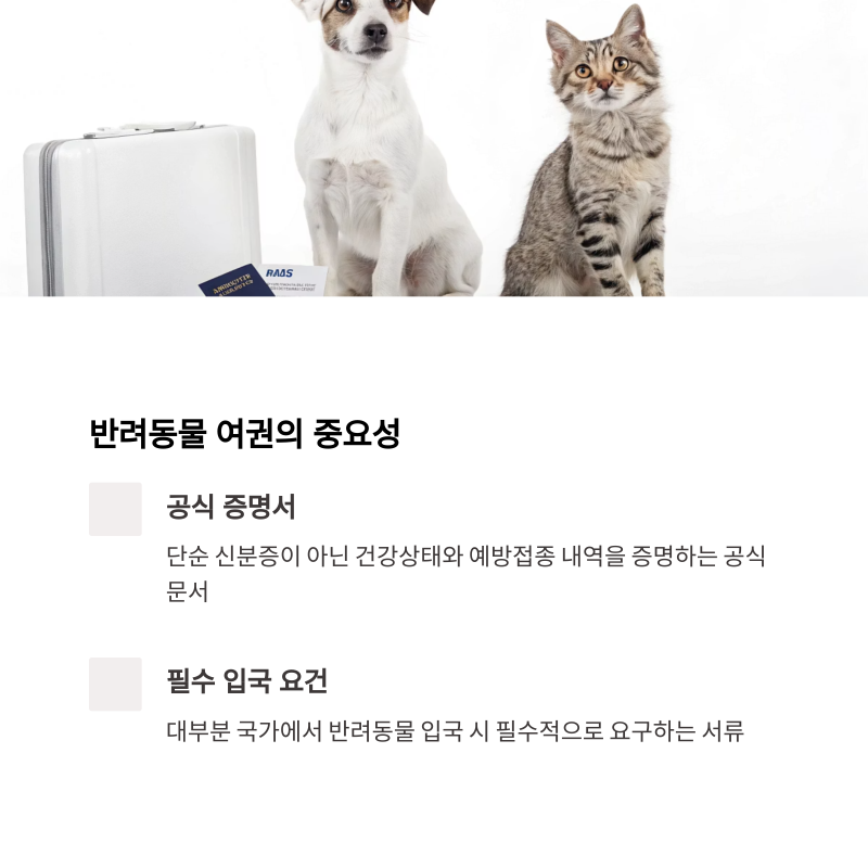 - 검역증명서: 항공기 탑승 및 입국심사에 필수