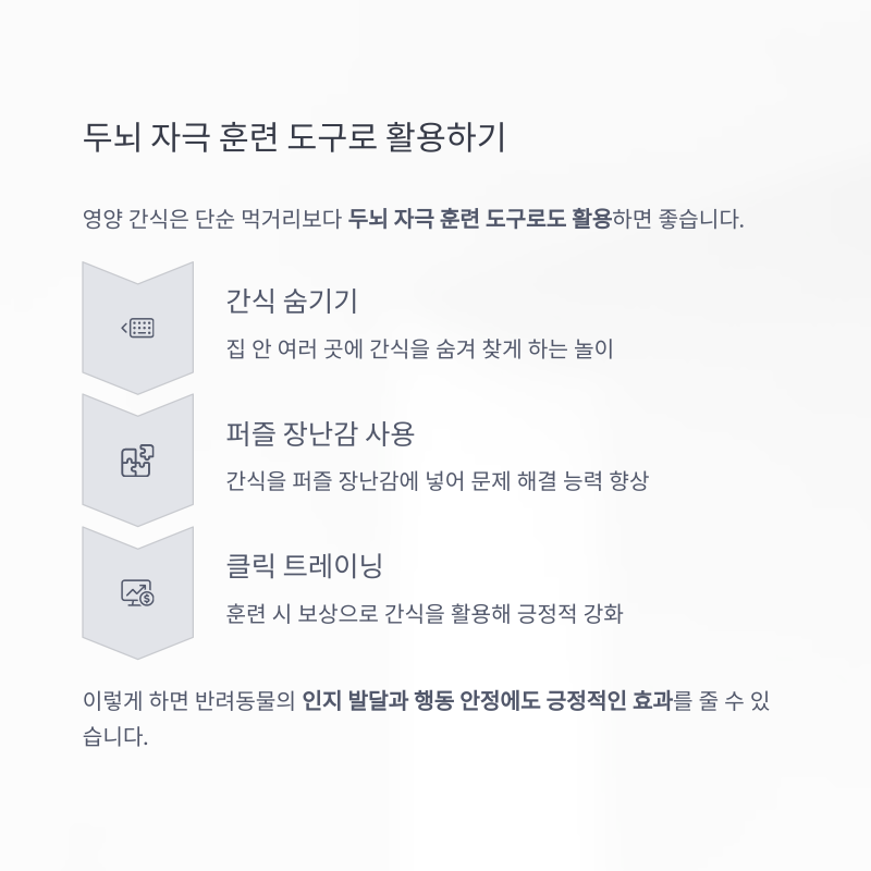 영양 간식은 단순 먹거리보다 두뇌 자극 훈련 도구로도 활용하면 좋습니다.