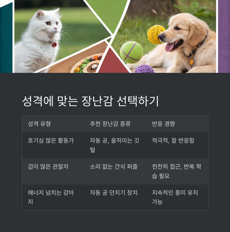 | 성격 유형 | 추천 장난감 종류 | 반응 경향 |