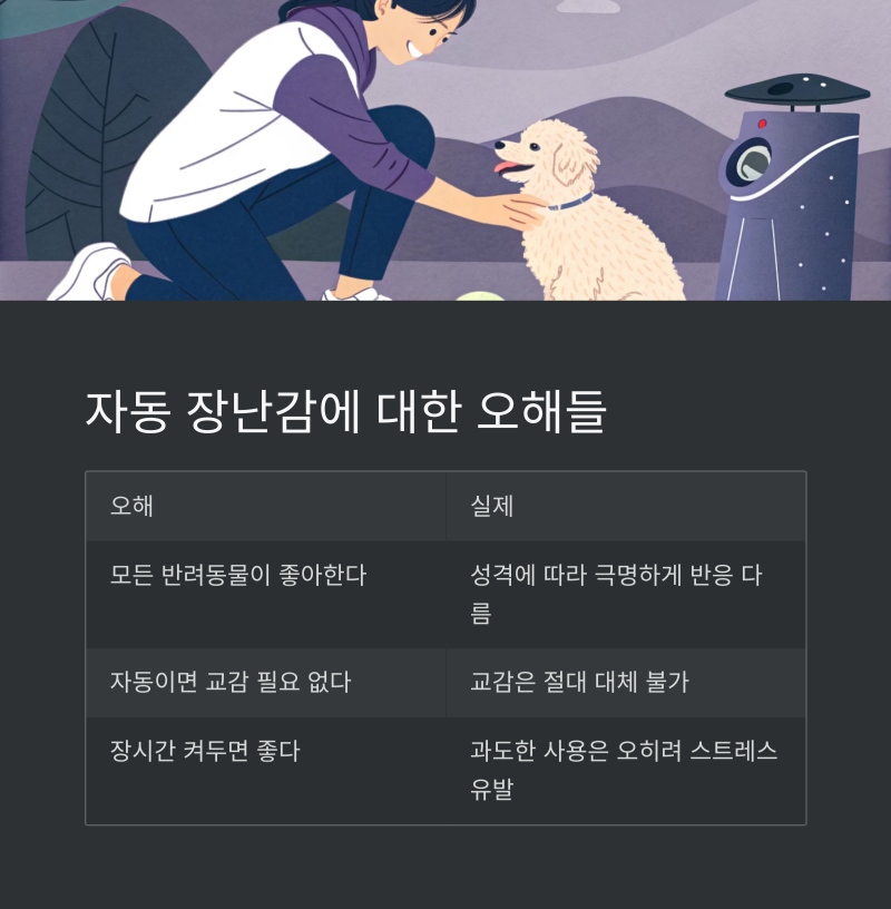 자동 장난감은 보호자의 역할을 일부 보완하는 도구일 뿐, 완전한 대체는 불가능합니다.