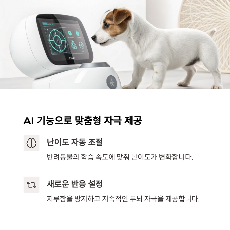 이러한 AI 기반 장난감은 특히 지능이 높은 견종이나 집에서 혼자 있는 시간이 긴 반려동물에게 매우 유용합니다.