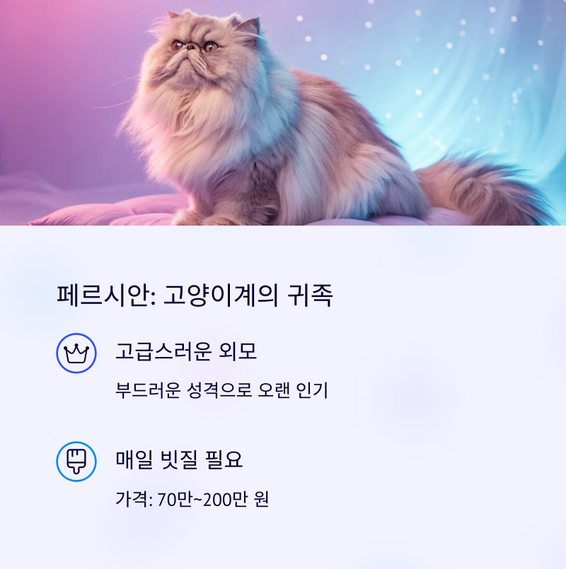 | 페르시안 | 70만~200만 원 | 긴 털, 우아한 외모 |
