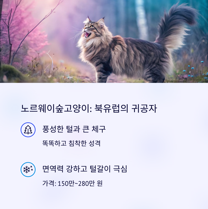 | 노르웨이숲고양이 | 150만~280만 원 | 대형묘, 건강함 |