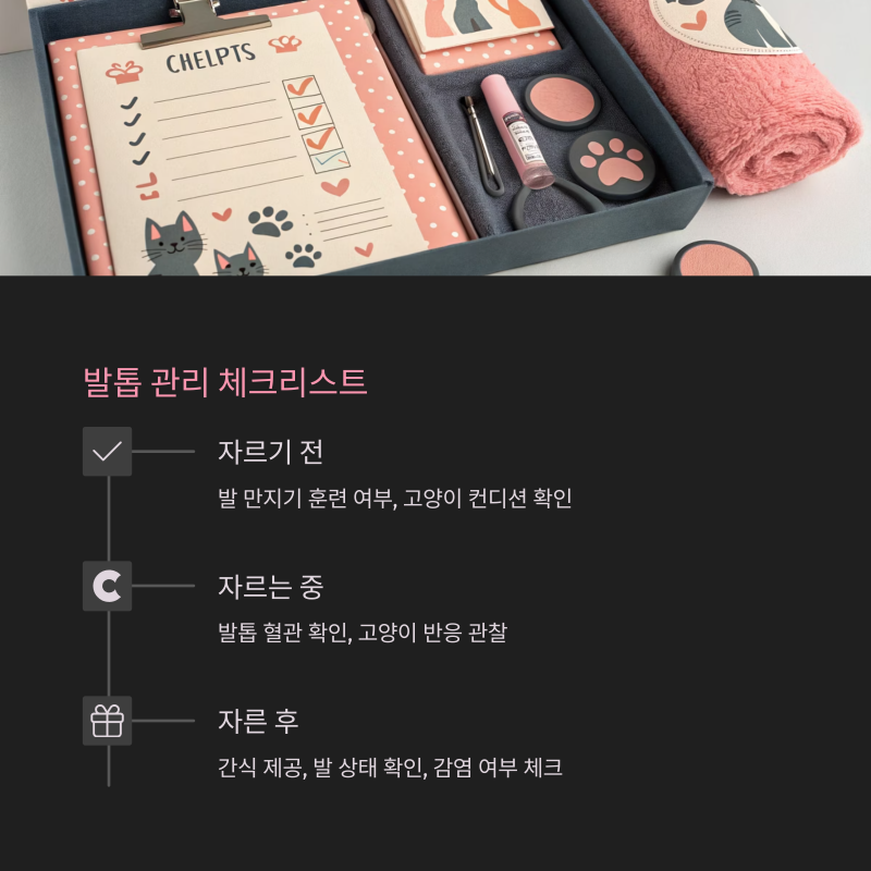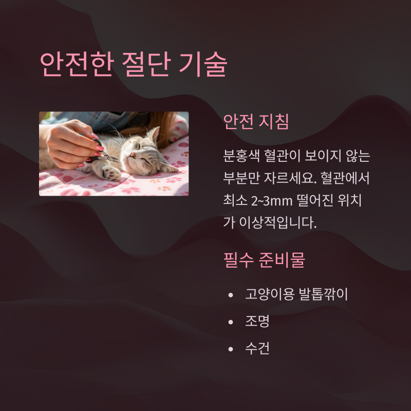발톱 자르기는 단지 위생 관리가 아니라 고양이와의 신뢰를 쌓는 과정이라는 점을 기억하세요.