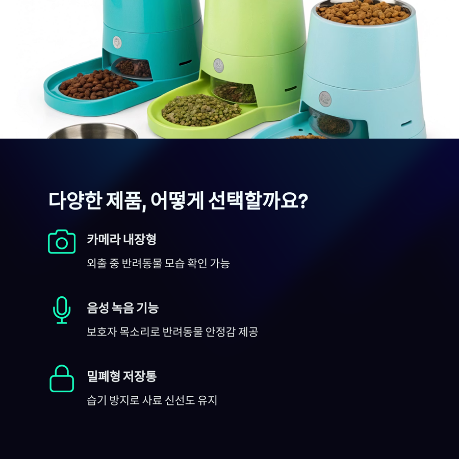 자동 급여기는 반려동물의 건강뿐 아니라 보호자의 일상도 여유롭게 만들어주는 도구입니다.