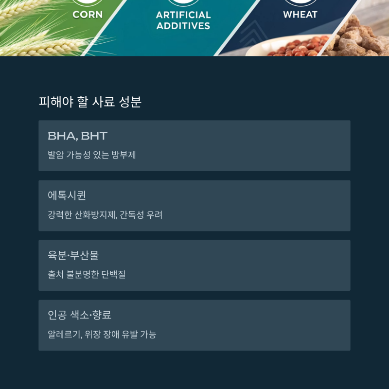 피해야 할 사료 성분 요약