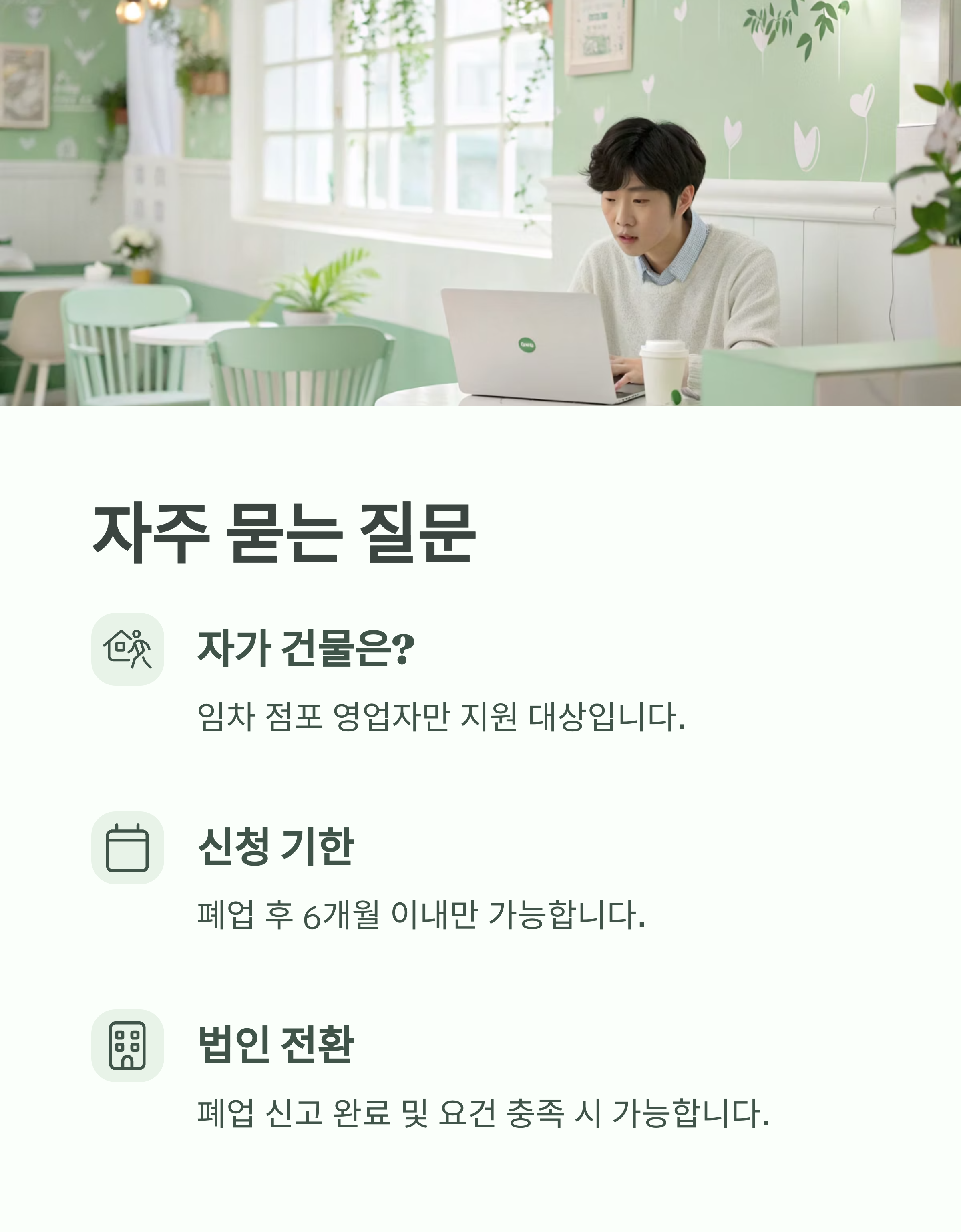 A. 폐업 사실이 세무서에 신고되었고 요건을 충족하면 가능합니다. - Q. 업종 제한은 어떤 기준인가요?