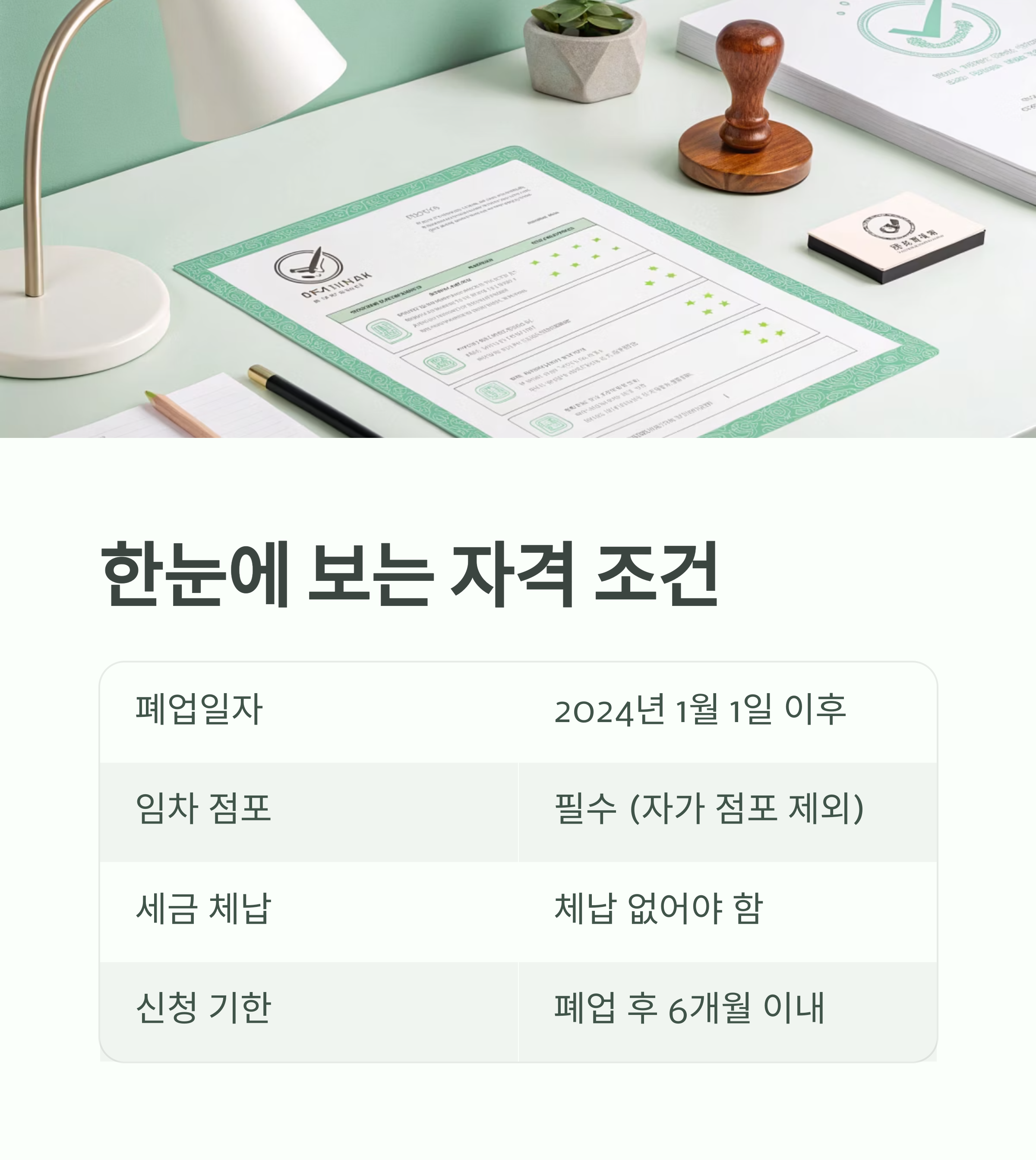 폐업 후 6개월 이내 신청해야 자격이 유지됩니다.