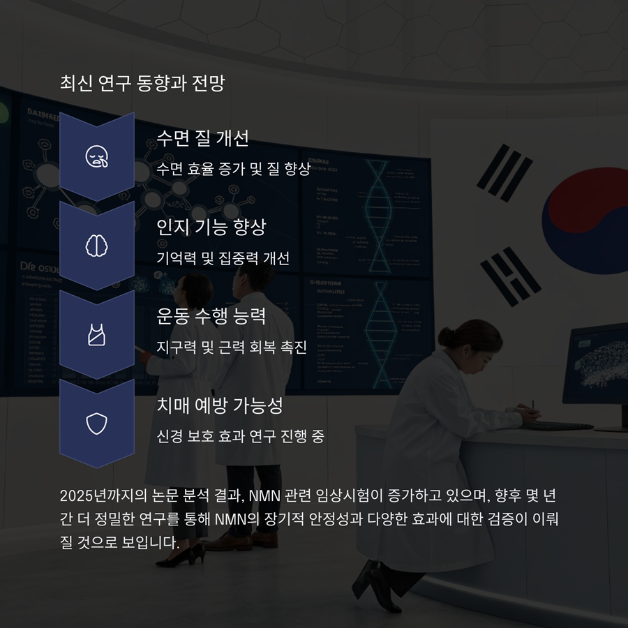 향후 몇 년간 더 정밀한 연구를 통해 NMN의 장기적 안정성과 치매 예방 등 효과에 대한 검증이 이뤄질 것으로 보입니다.
