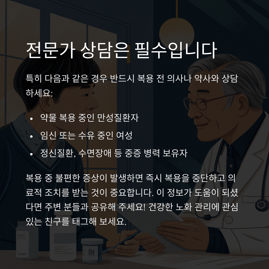 | 현재 복용 중인 약물 여부 | 의사 상담 후 병용 가능 여부 확인 |